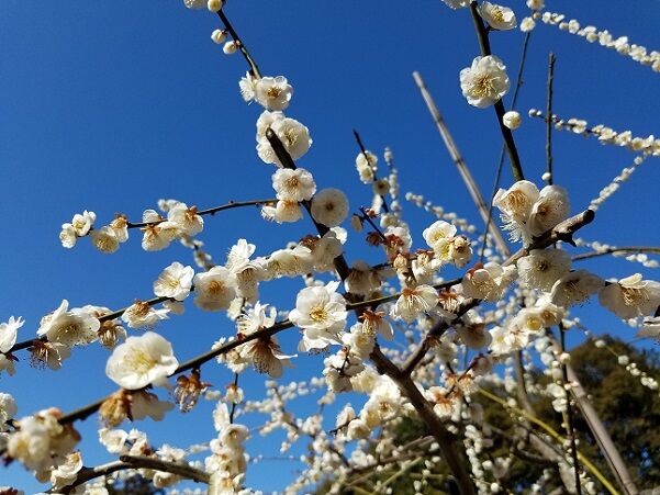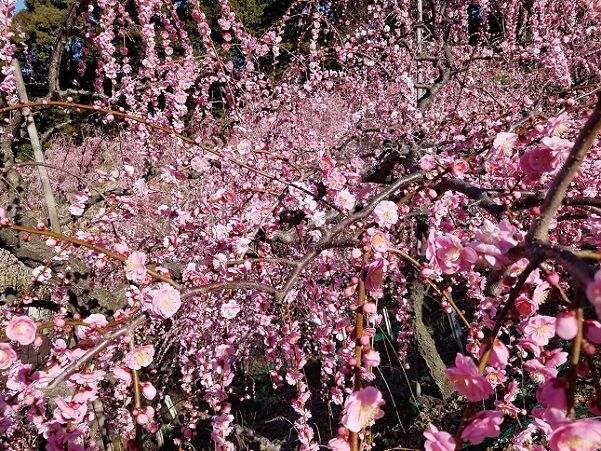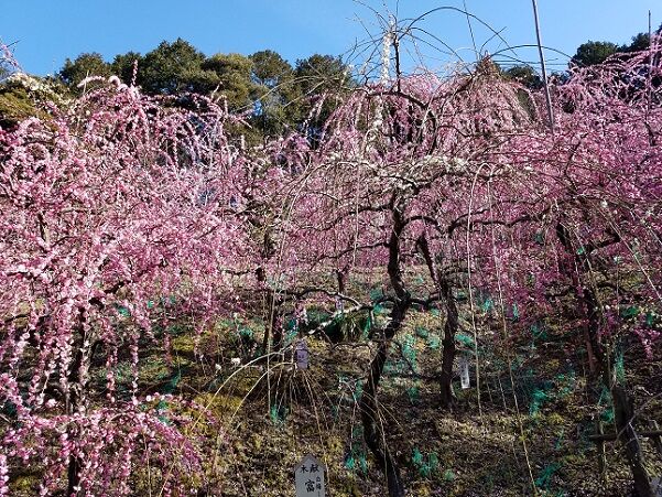 ほぼ8分咲き位でした。ここは枝垂れ梅がほとんどです。