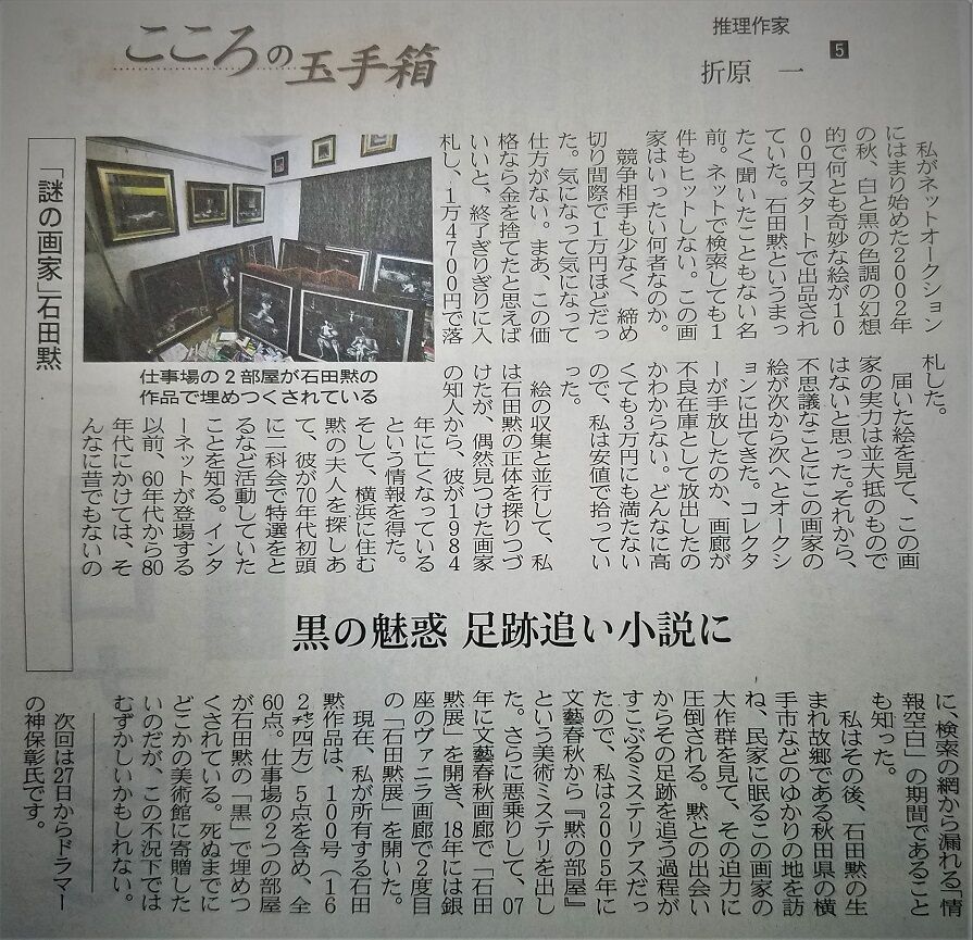 今日の日経新聞夕刊に無名の画家「石田黙」の話が掲載。
