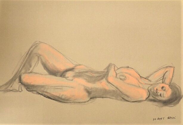 今回の作品はパステル画で、おそらく自身が主催の絵画教室で、指導のついでにモデルを描かれた作品でしょう。5点まとめての落札です。(サイズcm×40cm)