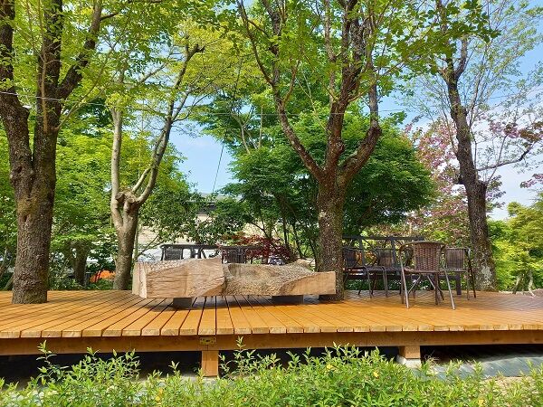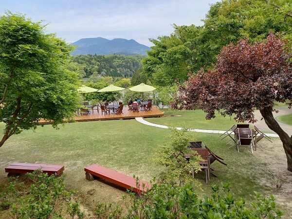 もともとゴルフ場だった敷地を活用した銀の森さん、自然豊かな広大な土地に本業のおせち料理冷凍工場や、和菓子、洋菓子、だし汁専門店やピザをはじめ、地元名産品と自社のこだわり商品を売るマーケットもあり、この時期新緑の清々しい森を散策できることは、人生の贅沢なお土産です。