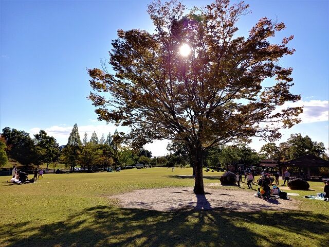 最初に各務ヶ原市の「学びの森」へ、イチョウ並木が有名な公園で、昨年訪れた時はすでにイチョウの枯れ葉は散ってしまっていましたが、今年のこの時期は紅葉盛りには少し早すぎました。