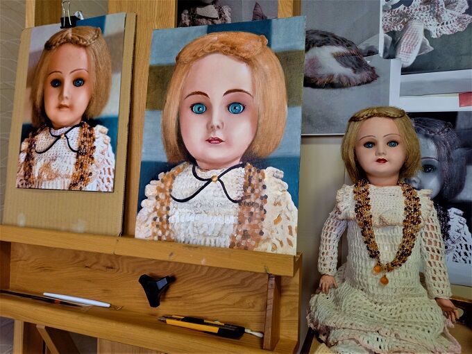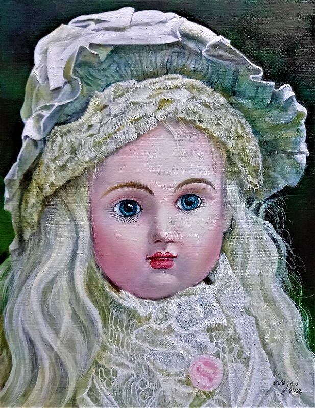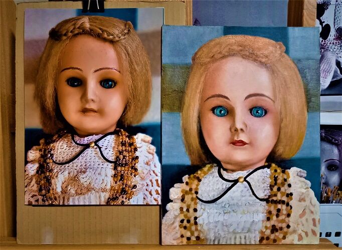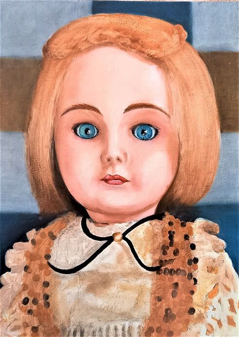 数日前に描きかけの「アンティークドール8」を発見、再度描くことにします。