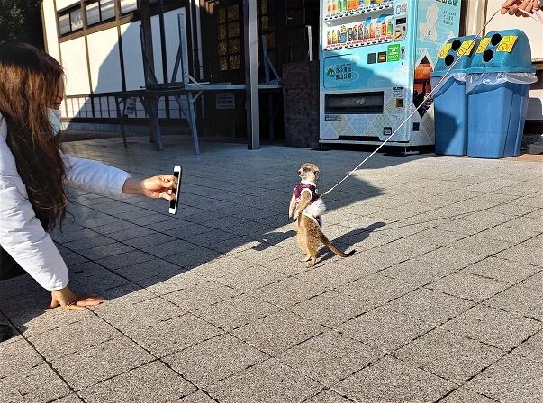 帰りに、入り口で珍しいペットのミーマキャットをつれた女性に会い、声かけして撮影しました。