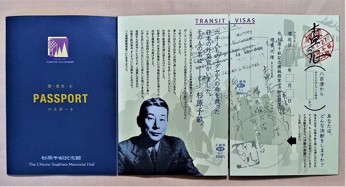 杉原千畝記念館に入場してから彼の功績を家内に説明しました。