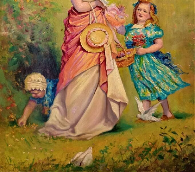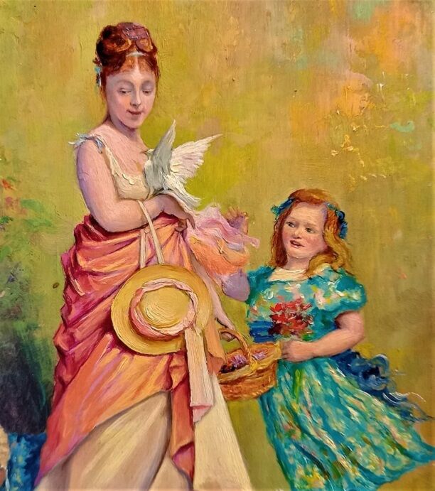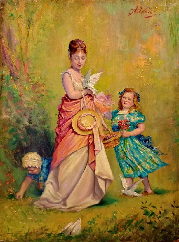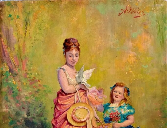 昨日届いた作者不詳(サインはA.Weist)の絵、よくよく観察すると5か所に絵の具が剥がれ、下地の絵の具がむき出し状態でした。