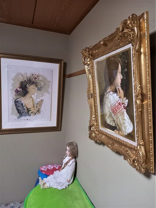 今日午後の散策後、額縁から絵を取り出し、ガラスなしのむき出しの絵なので、絵の表面を薄めた洗剤液を使い、表面の汚れを筆で洗い落としました。
