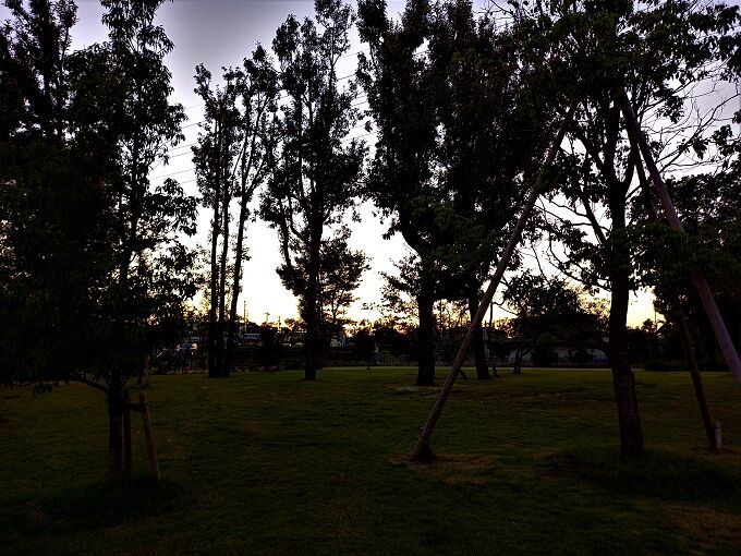 今日の夕方散歩、出発時刻は午後6時15分前、ドアーを開けたら西の空が紅く焼けている。