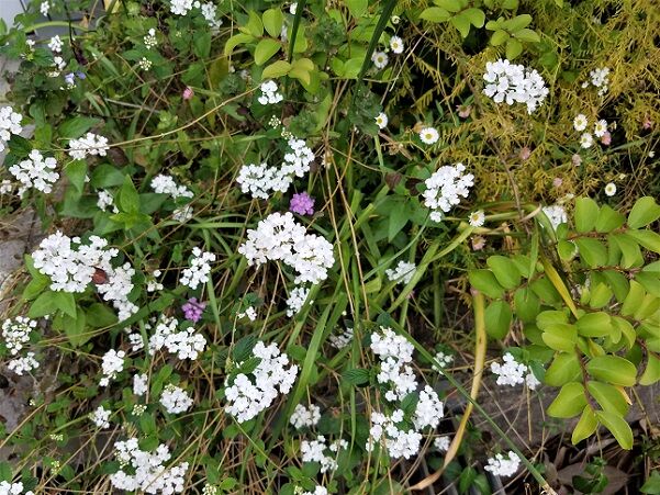 特に寮の敷地内、雑草にまみれた中で咲く花々、手入れもせず伸び放題ですが、ある意味自然のまま時期に応じて様相を変え、綺麗に咲く小さな花々。