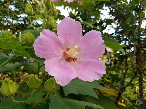 今日は芙蓉の花を撮影、ザクロも今年は9個実っています。