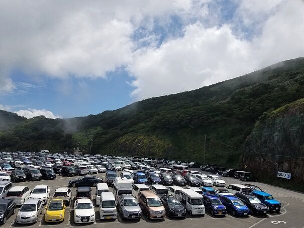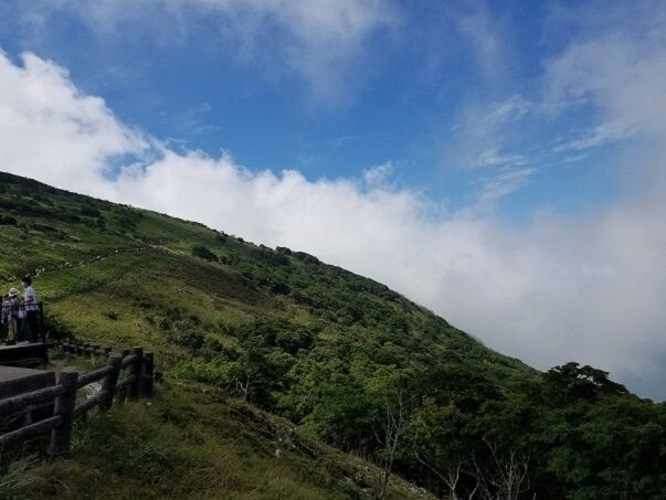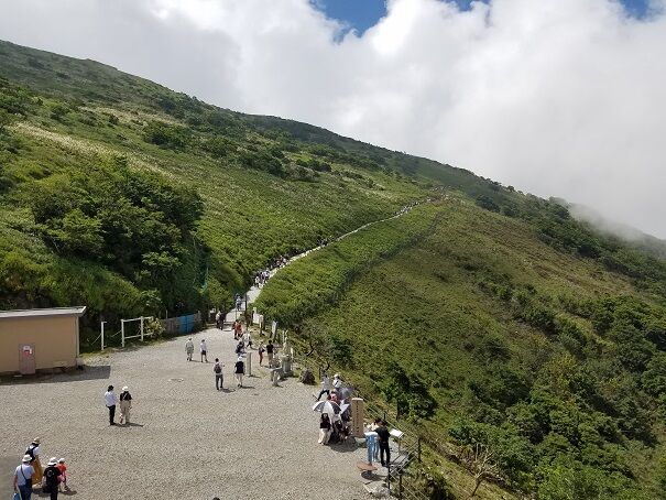 山頂駐車場から伊吹山山頂へはもう少し歩いて登らねばなりません。午前11時近くに到着しましたが、駐車場はほぼ満車状態、しかも雲が周辺に立ち込め、時間が経つとともに霧が出てきました。下界や琵琶湖の眺めは暫く居ても期待できず、20分程滞在して帰ってきました。